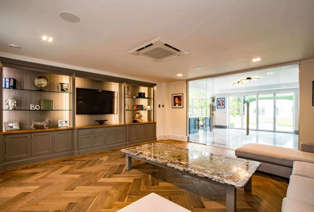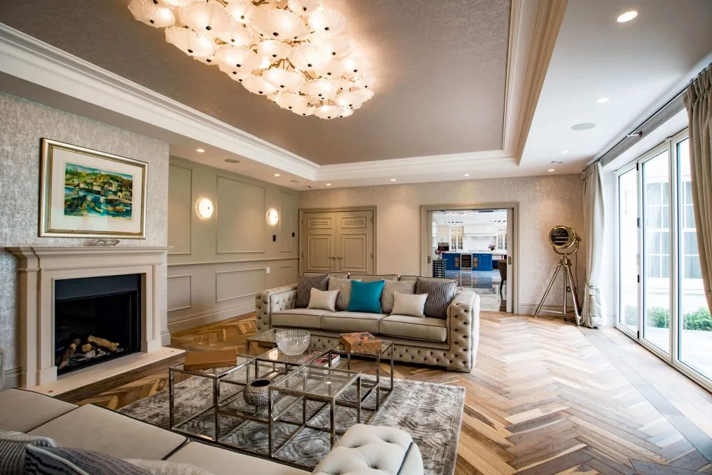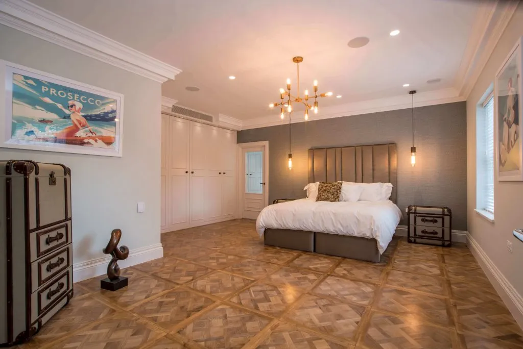 Oversized Engineered Parquet to Smoked Oak Versailles Panels.