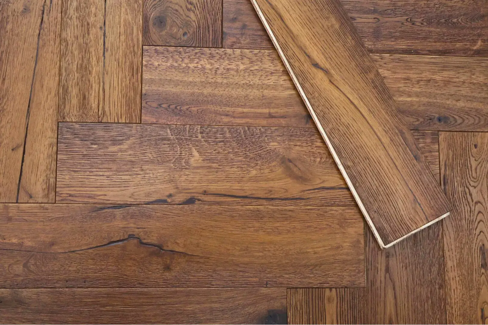 The lacquered surface enhances the natural oak grain, showing off its rich, golden tones and subtle textures. Its classic herringbone pattern adds rhythm and visual interest to any room. As a result, spaces feel more dynamic and sophisticated. This makes it ideal for living rooms, hallways, offices, or boutique commercial interiors.