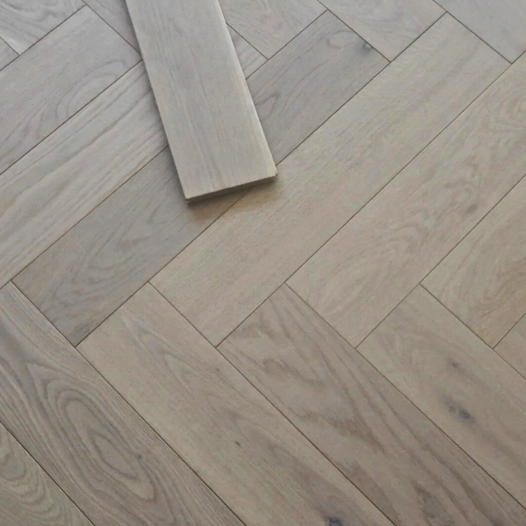 The Eco Range Parquet Cotton White Oak Engineered Wood Flooring brings together contemporary elegance and unbeatable value. Its soft, white-washed tone and parquet format add a fresh, light feel to interiors, making it perfect for modern homes, offices, or retail environments.