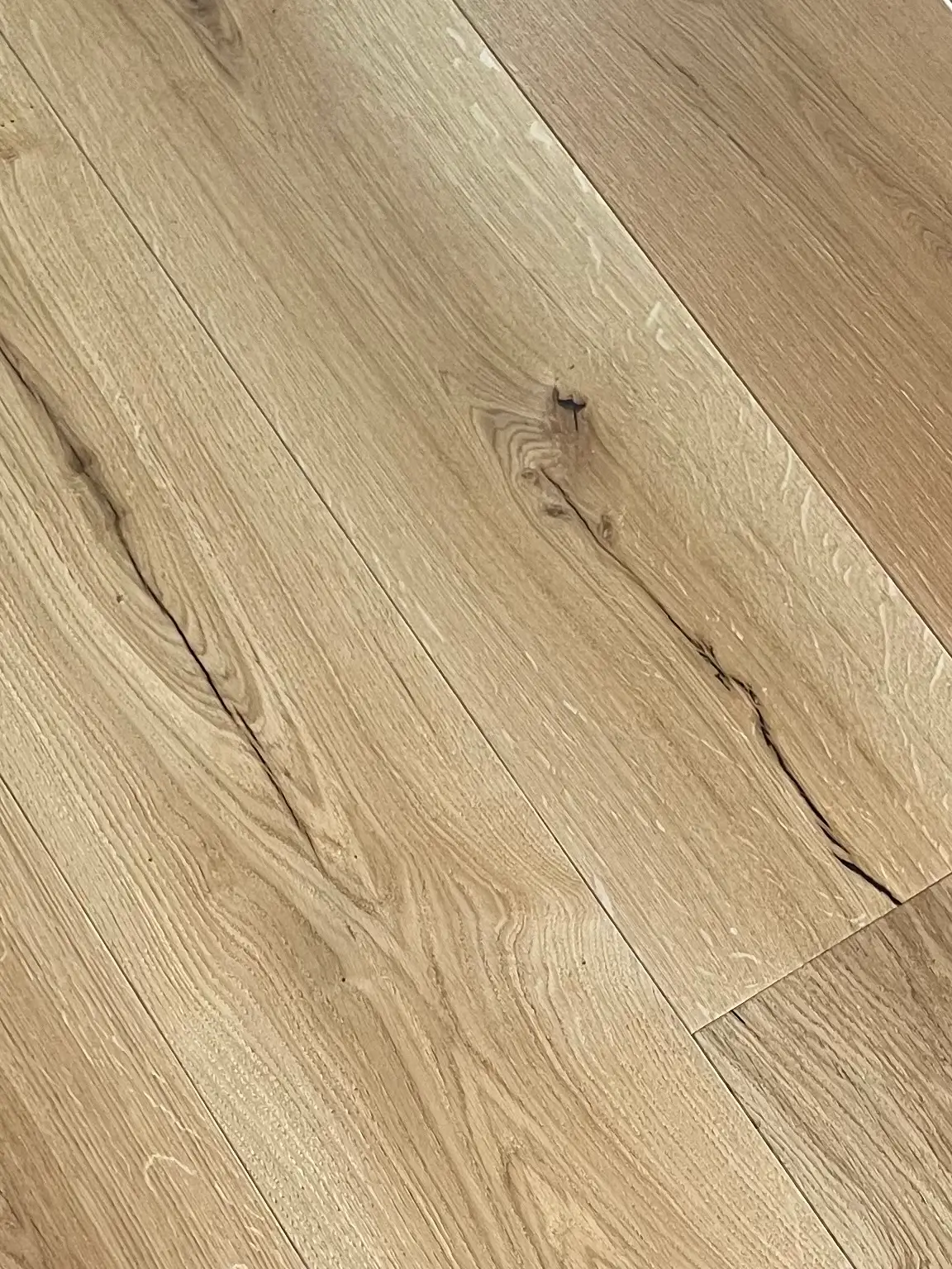 The brushed surface exposes the intricate character of the oak, while the oiled finish enhances its natural colour and protects against everyday wear. Each plank showcases subtle variations, giving your floors a warm, inviting, and authentic appearance. Whether installed in a living room, kitchen, office, or retail space, the Heritage XXL Range Natural oak adds an understated elegance to any interior.
