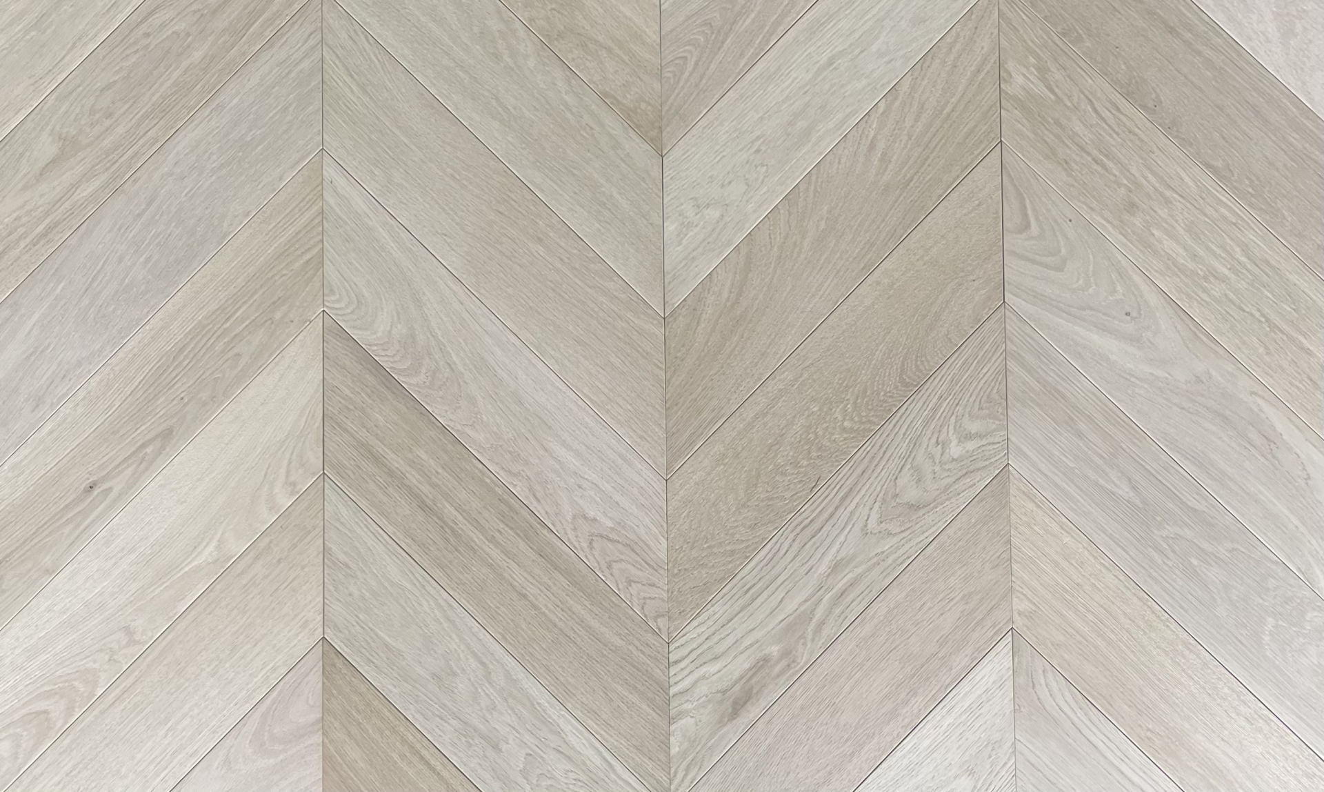 120mm wide planks showcasing natural raw oak tones and a classic chevron pattern. Premium quality engineered for luxury interiors.