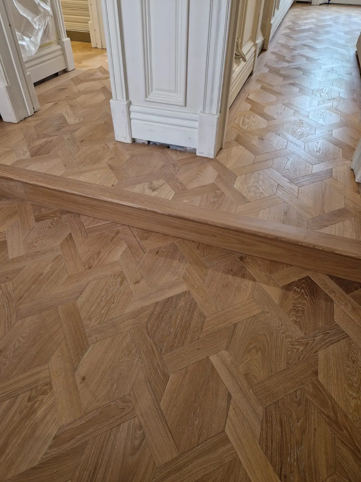Mansion Weave Geometric Parquet Unfinished Oak Flooring – Engineered, Brushed, and Customisable
