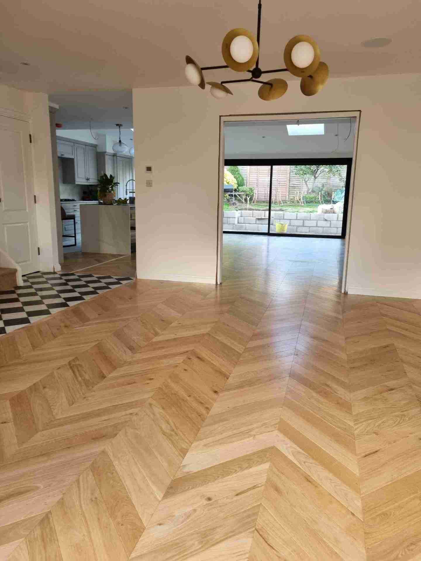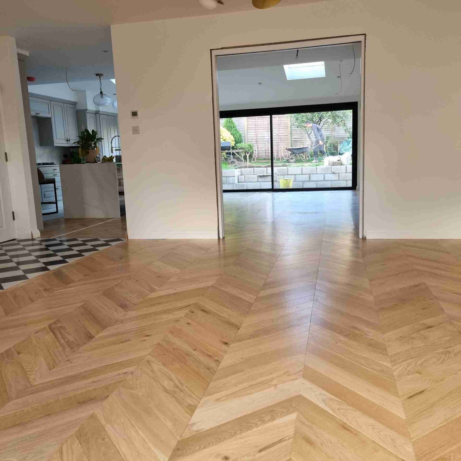 Our Chevron Natural Oak 90 Lacquered is a timeless design that has been used in all types of décor and brings sleek and style to any room compared to your standard plank flooring.