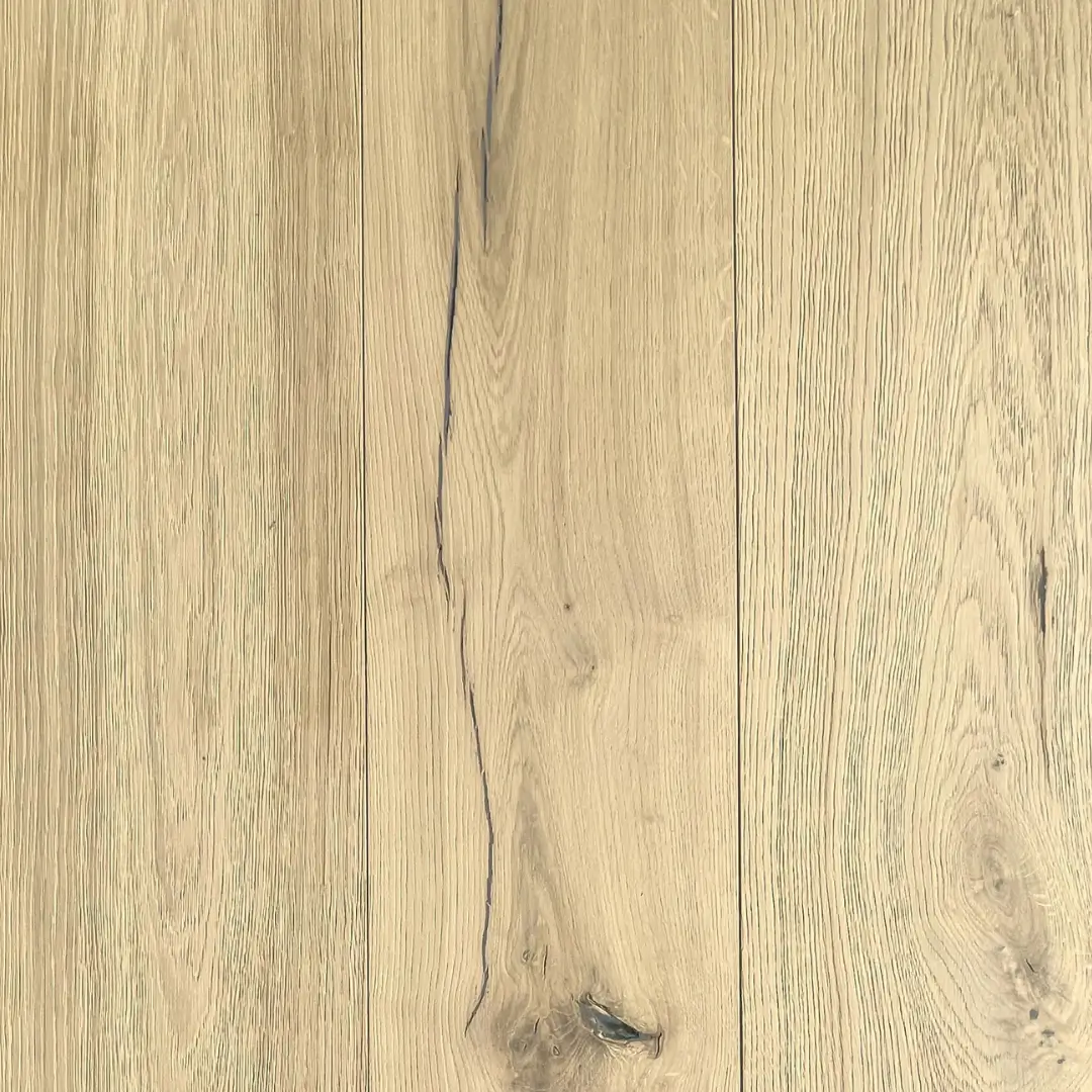 Discover our new 3-meter fixed-length unfinished vintage oak wood flooring, featuring natural cracks and knots for a rustic charm. Available in widths of 150mm, 190mm, 220mm, and 260mm, this engineered oak flooring offers versatility for any space. Limited stock—order now!