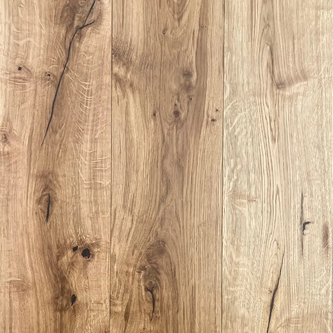 Lighter-toned rustic oak not only creates warmth but also makes smaller rooms appear larger and brighter. The generous plank size helps open up spaces, while the natural rustic grading ensures each floor installation is unique, featuring knots, colour variations, and authentic oak character.