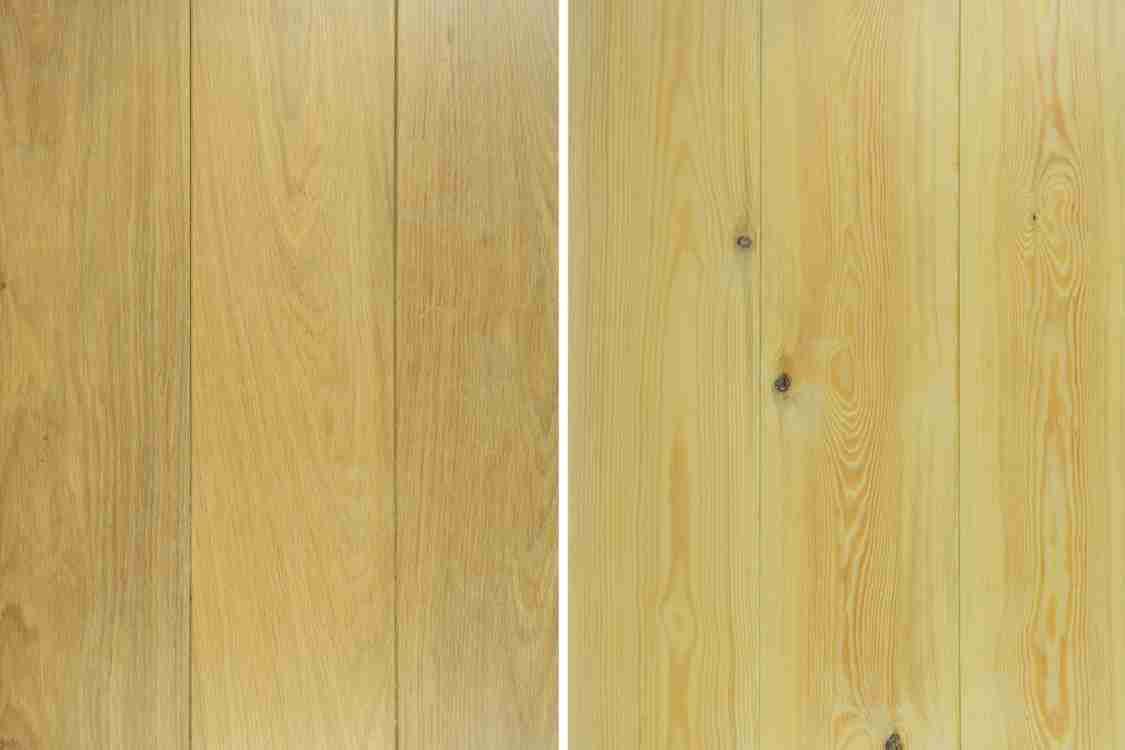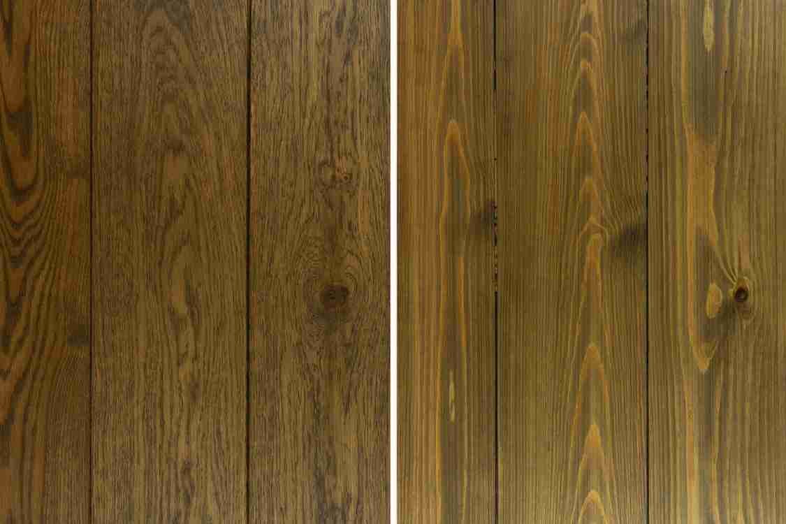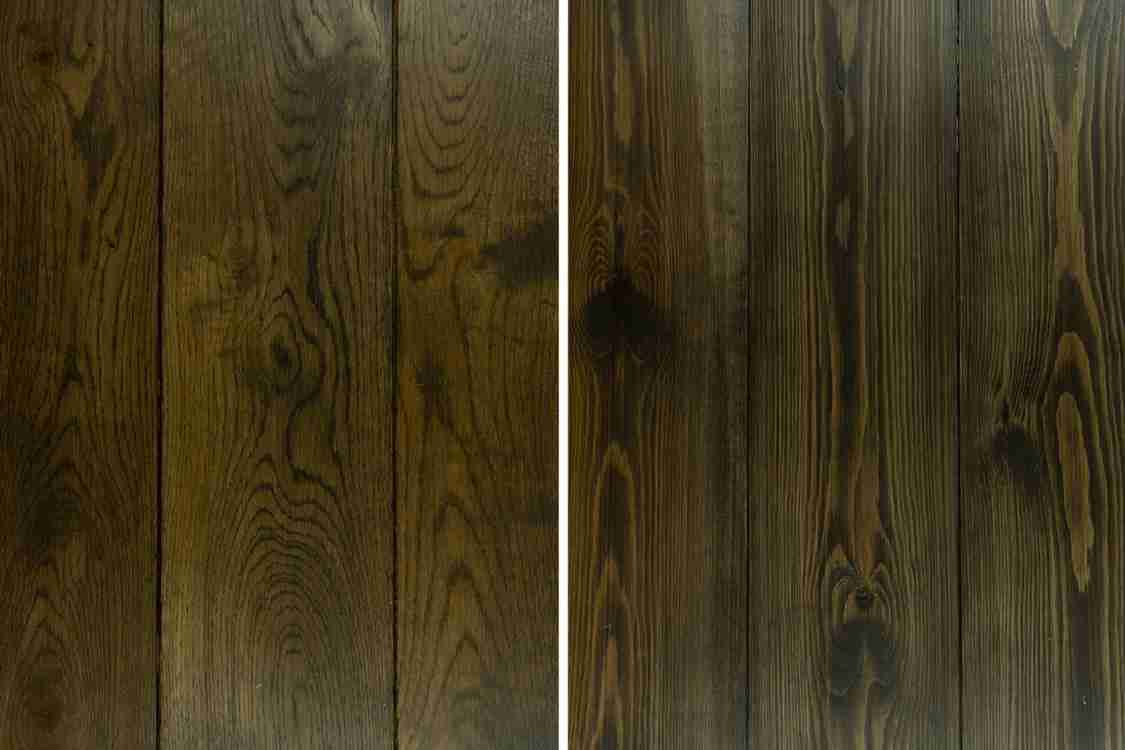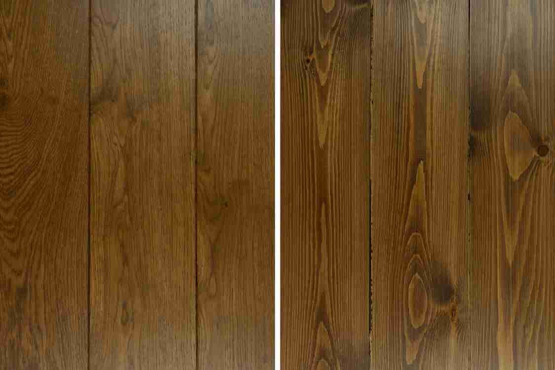 Brushed and oiled – Steel brushes are used in the direction of the grain which opens up the surface of the wood and removes splinters. The wood is then oiled.