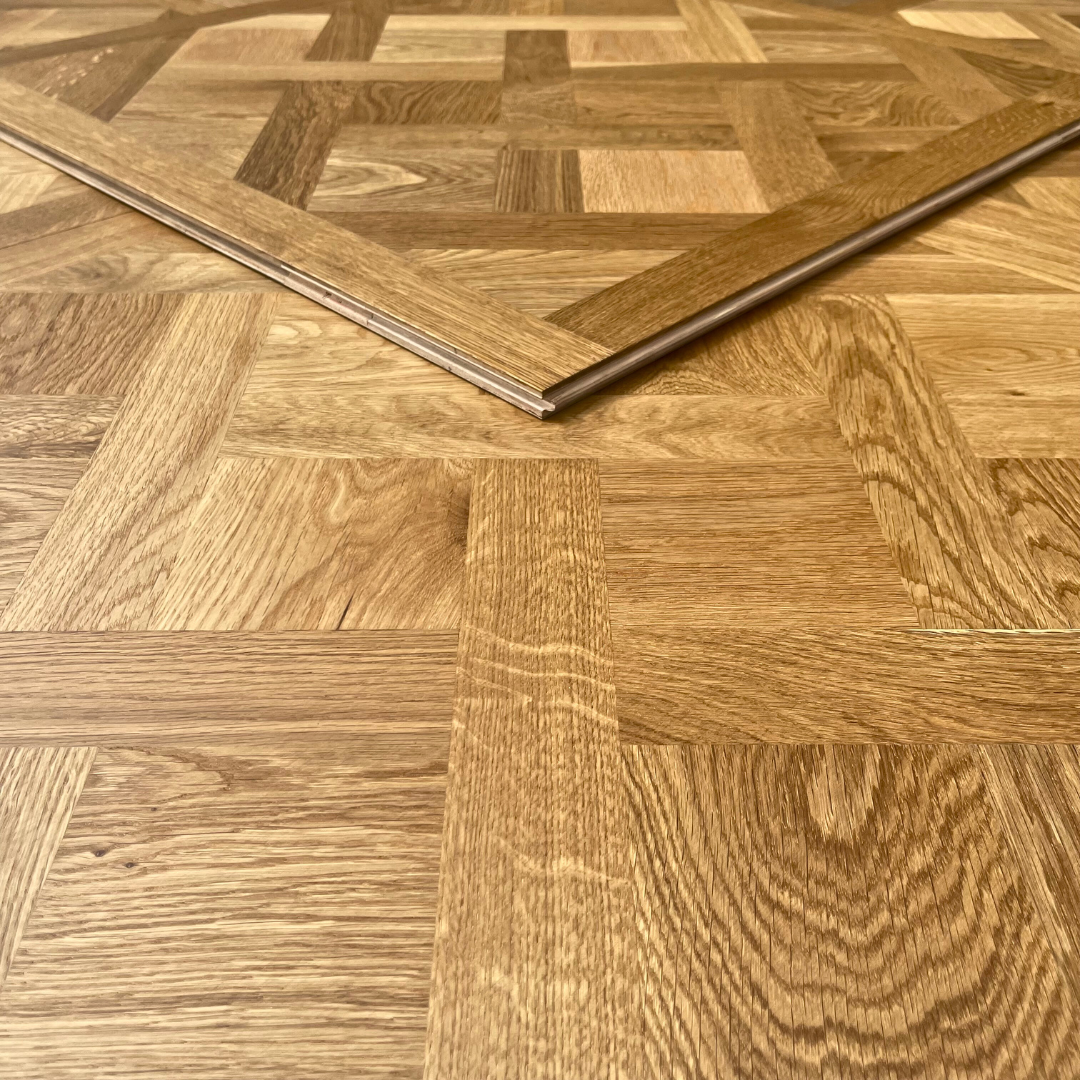 Oak Versailles panels are a true elevation from standard wood floors. A timeless elegance and grandeur look and its aesthetically appealing and luxurious look and feel it is a true feature for any project.